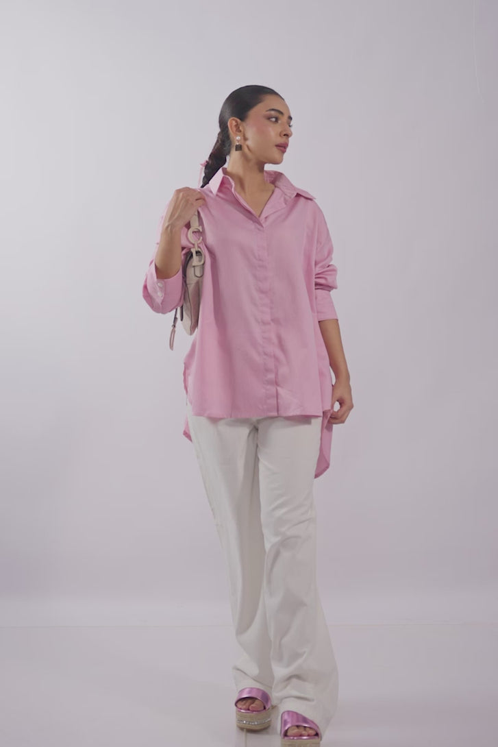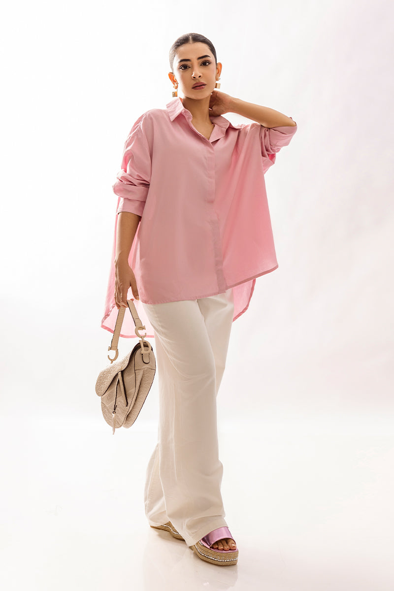 Elevate your everyday with the understated sophistication of our "Blush Whisper" shirt, meticulously crafted from a supremely soft and premium cotton satin. This oversized shirt offers a fluid drape and refined silhouette, embodying contemporary elegance. It pairs flawlessly with our crisp white Denim pants, creating a look that is effortlessly polished and versatile.