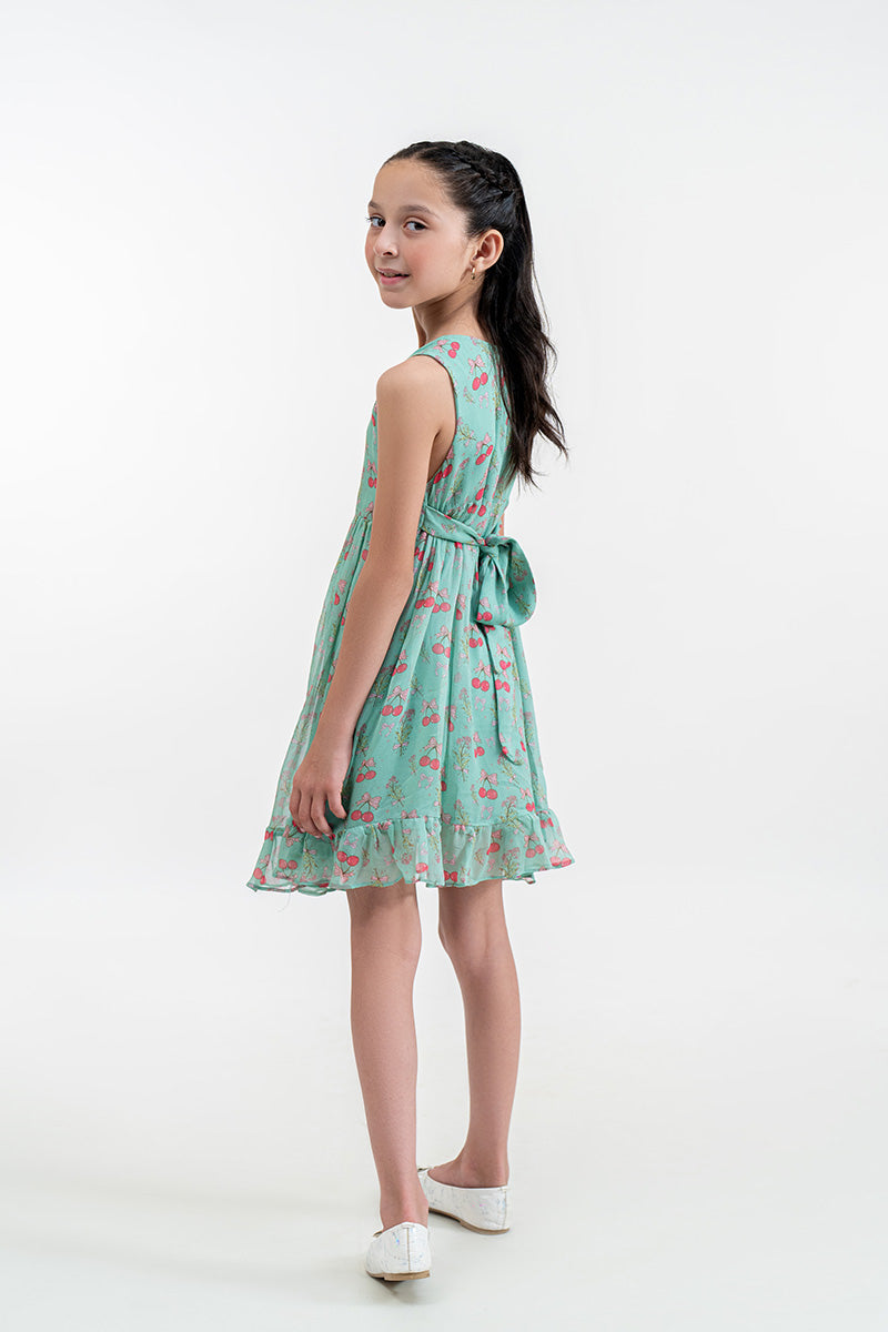 Get ready for smiles and twirls with the Dress! This Cherry kiss dress absolutely adorable dress features a refreshing mint green background sprinkled with the cutest pink cherry print. It’s designed for fun, with a comfy, sleeveless cut that lets little ones move freely, and a gentle ruffle at the hem perfect for showing off those happy spins.