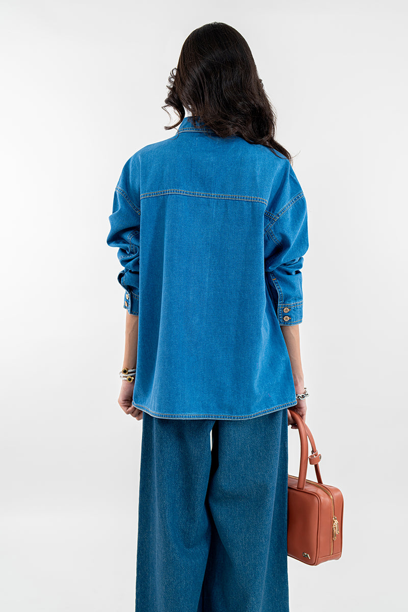 The Coastline Shirt is a timeless essential crafted from soft, breathable denim. It features a relaxed silhouette, a classic collar, and statement patch pockets for casual sophistication. Its slightly oversized fit makes it perfect for seamless layering or wearing buttoned up for a polished look..