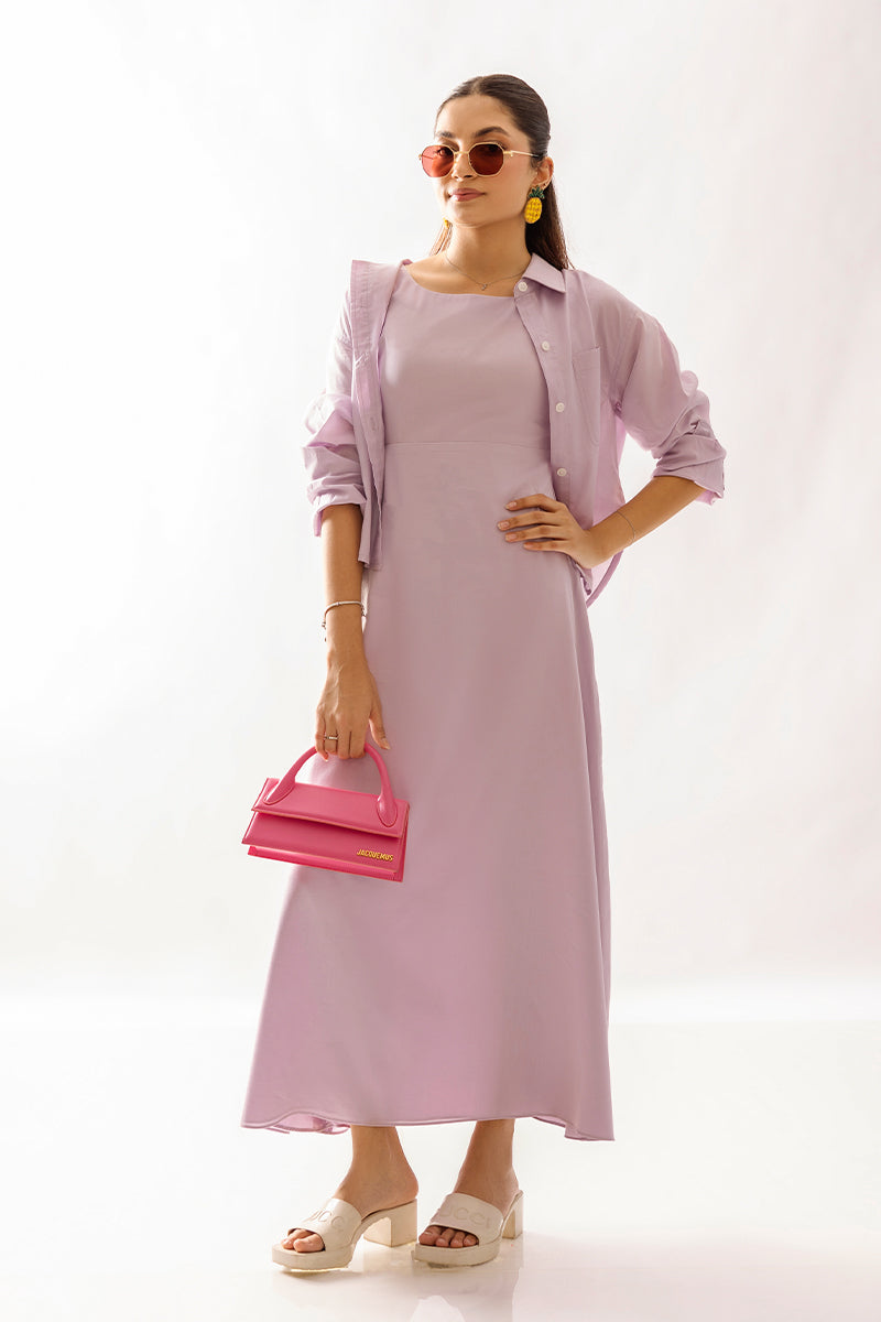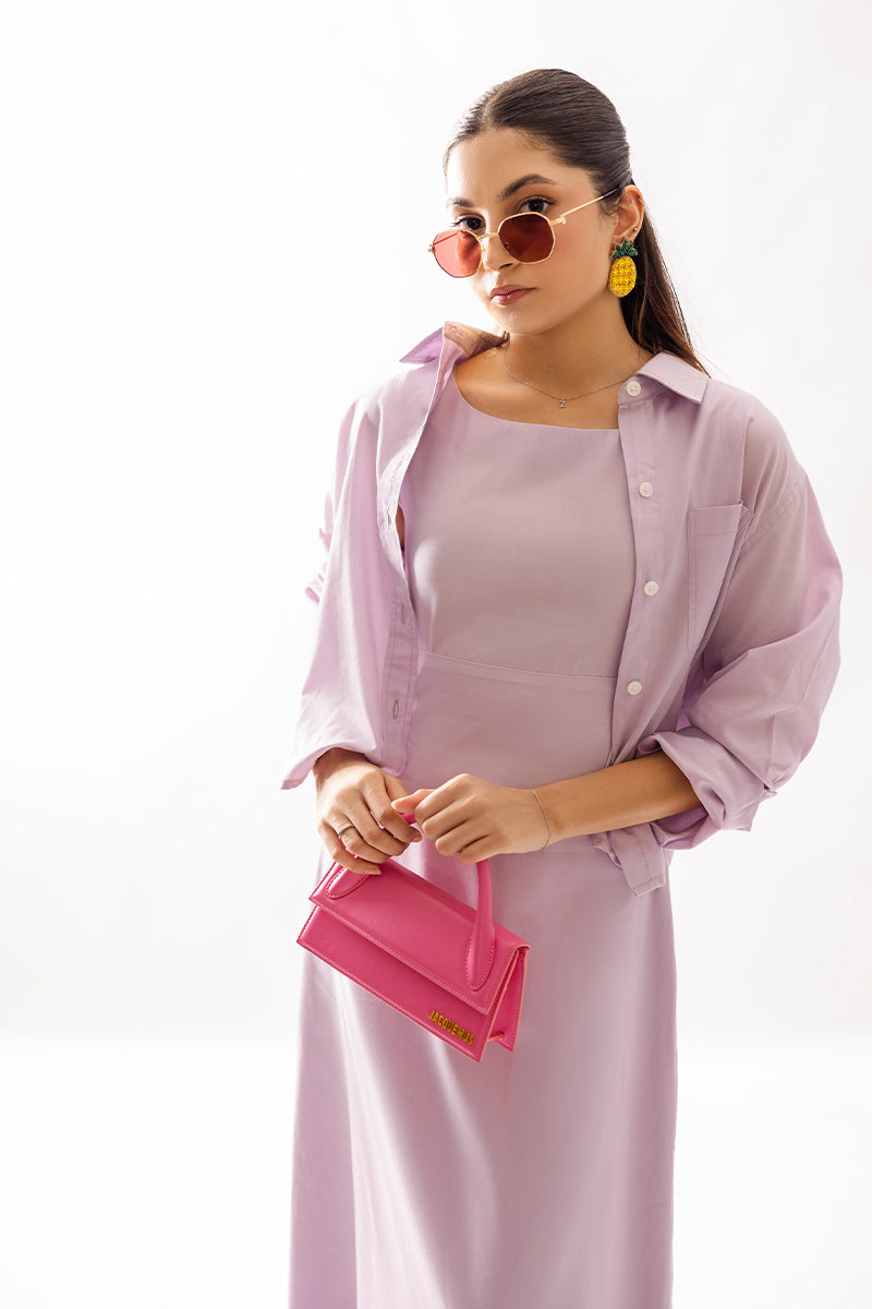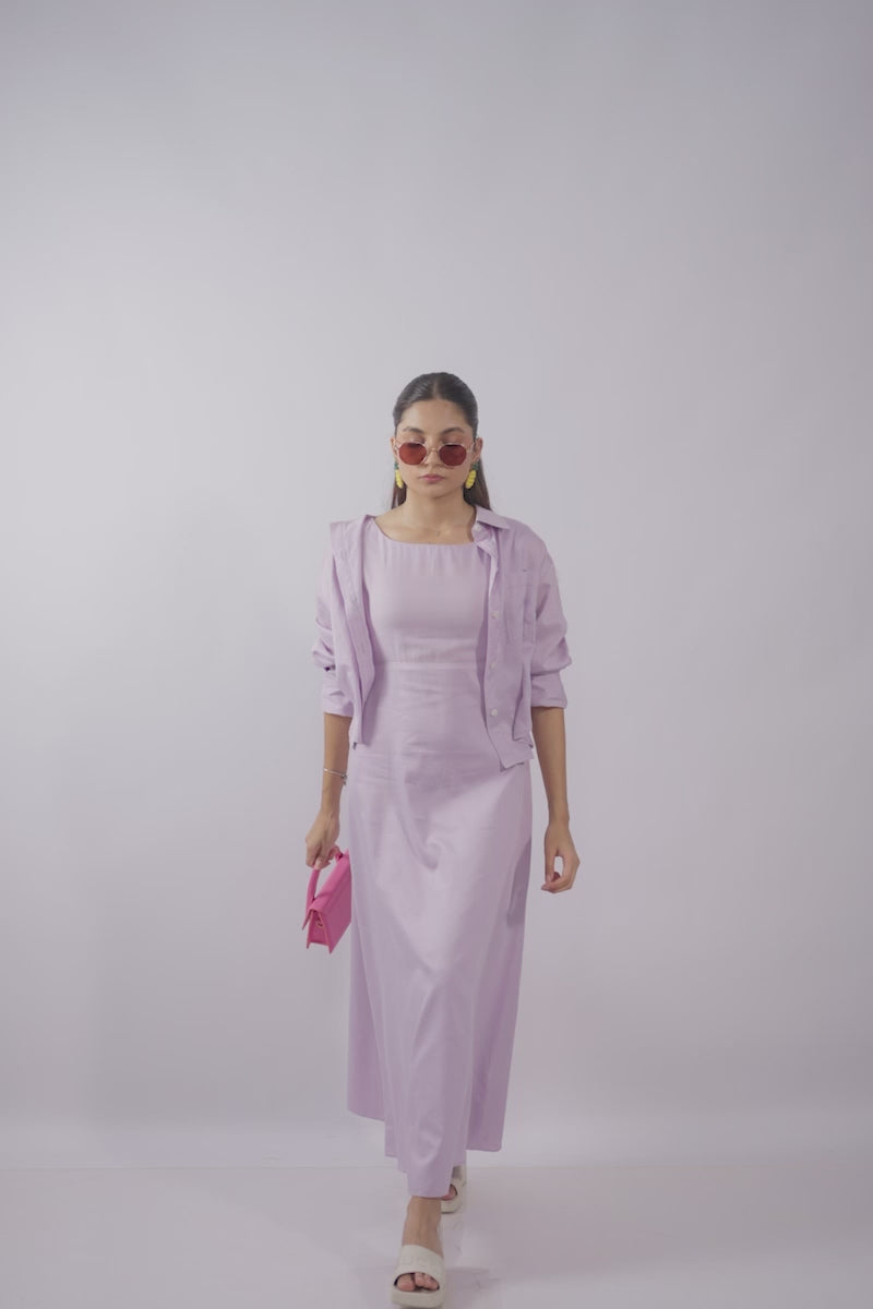 Float through your day in our dreamy lilac cotton satin set, where comfort meets pure charm! Made from the softest, most delightful premium cotton satin, it feels like a gentle hug against your skin. This lovely duo features a breezy sleeveless maxi dress that's just perfect on its own, and a matching shirt that adds that extra touch of effortless chic. It's the sweetest way to look put-together and feel absolutely fabulous.