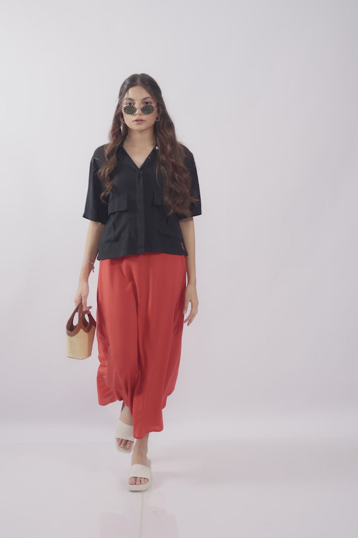Fall in love with the sweet sophistication of our Night Bloom top and skirt. Both pieces are lovingly made from incredibly soft Ecovero, ensuring you feel as good as you look. The top adds a touch of modern charm in elegant black, while the skirt brings a joyful splash of color and graceful flow. This delightful set is your secret to looking wonderfully chic with an adorable, easygoing vibe!