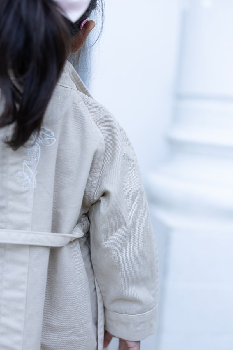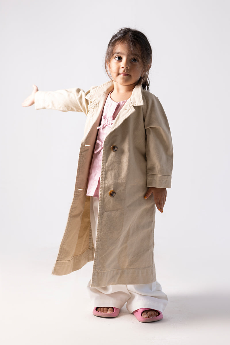 The Sand Dune Trench redefines sophistication. Crafted from premium, soft-toned denim, this coat features a tailored silhouette, wide lapels, and a classic double-breasted front. The denim texture adds a modern, utilitarian edge, allowing it to layer seamlessly and drape beautifully for enhanced movement.
